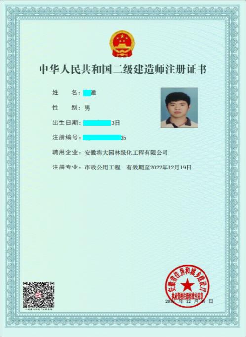 二级建造师证书
