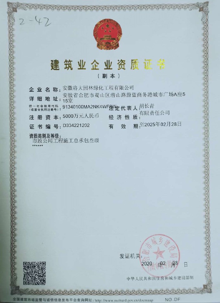 安徽将大园林绿化工程有限公司经营范围包括:安全技术防范工程、安徽园林绿化工程养护、安徽园林绿化工程设计、安徽小区园林绿化工程、安徽工程机械租赁、安徽市政工程公司、小区园建施工、小区园林绿化工程、小区照明亮化工程、市政工程、水电安装工程、防水防腐工程。